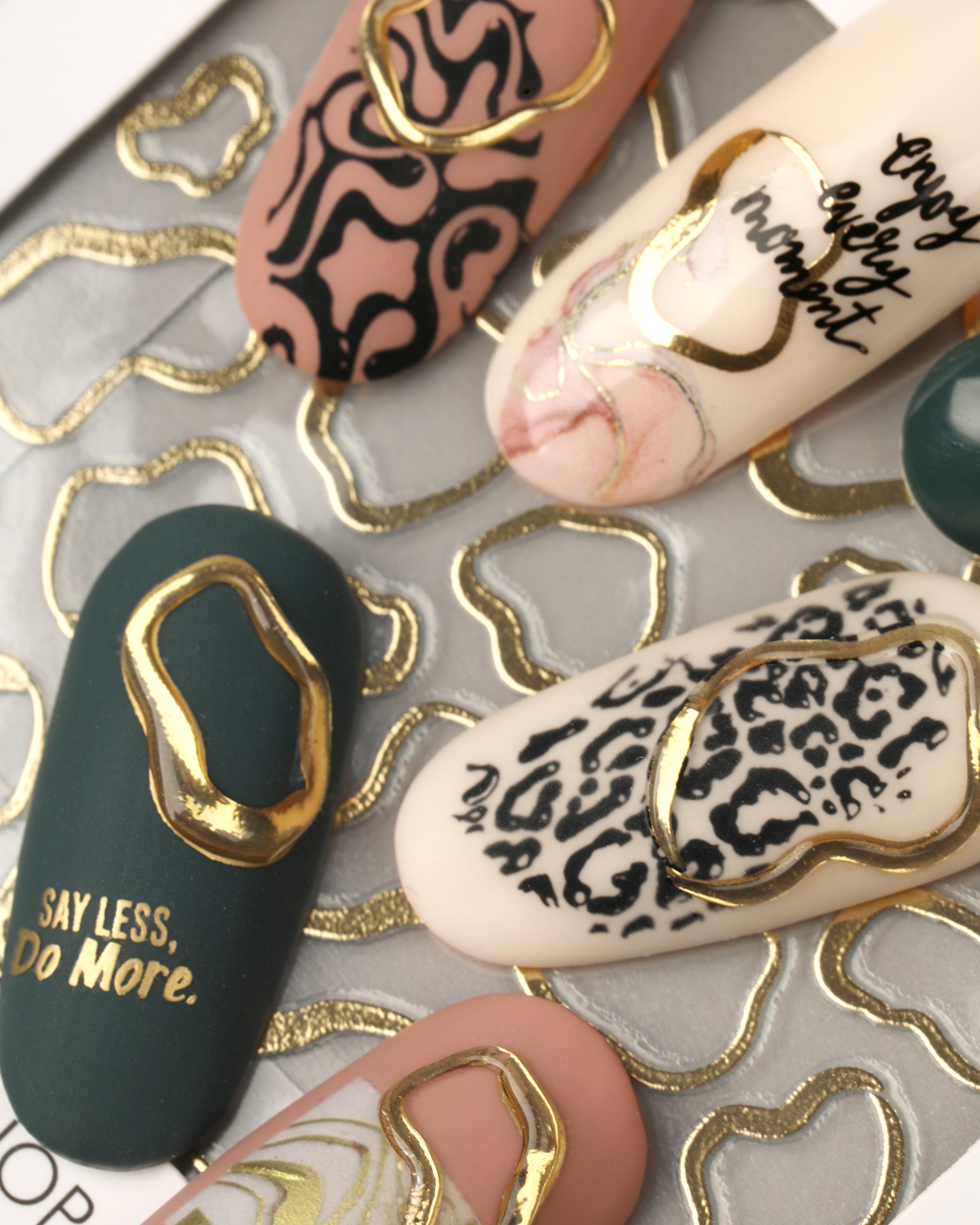 Charmicon 3D Silicone Stickers – объемные цветные наклейки для быстрых дизайнов. • Не забывайте сиять! Мерцание расплавленного золота придаст образу неповторимый «космический» шик и блеск. • Отлично подходит как основа для трендового «корейского маникюра». • Charmicon универсальны, их можно наносить на любую форму ногтей.