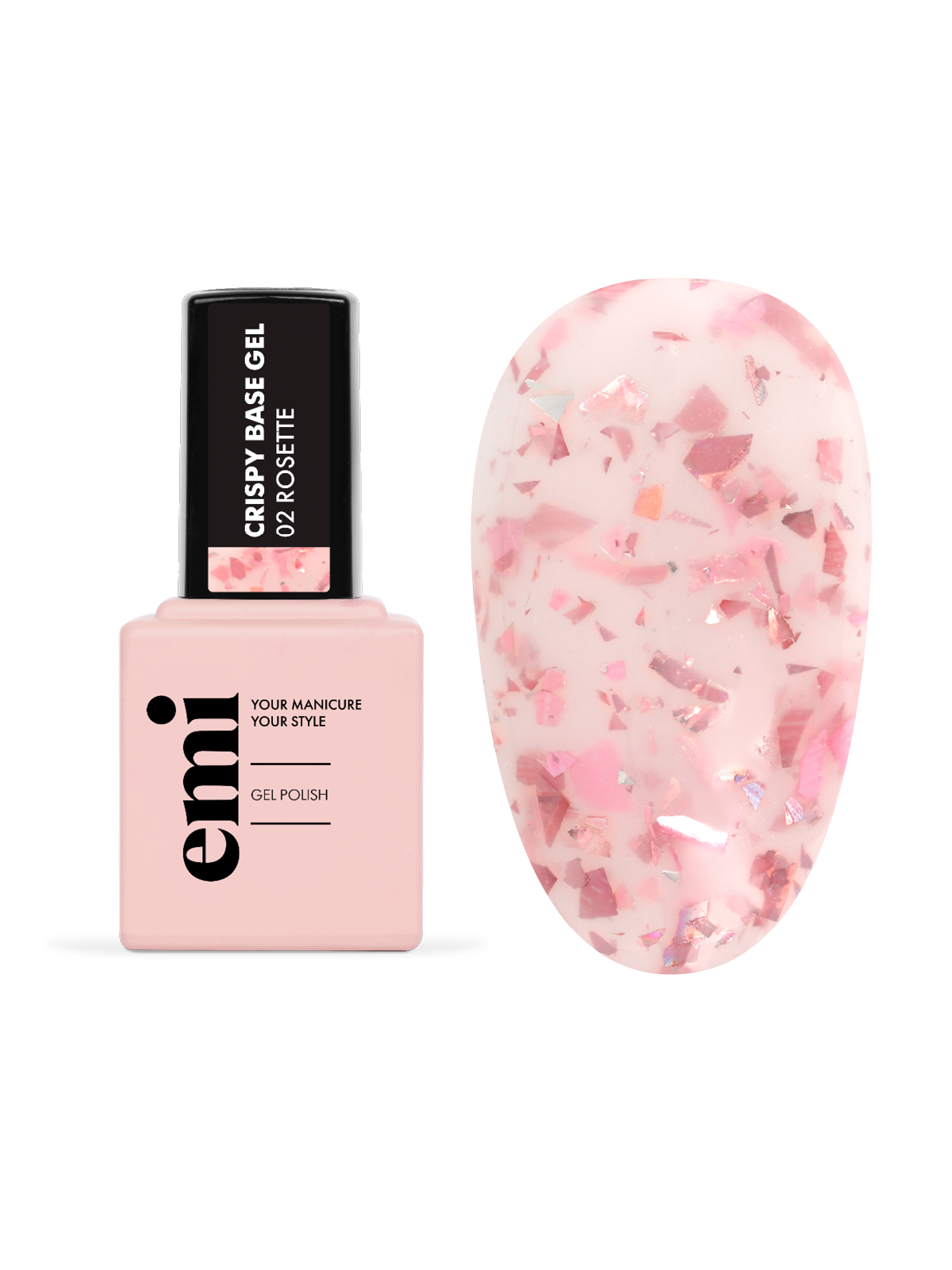 E.MiLac Crispy Base Gel - цветное базовое покрытие с декоративными элементами. Трендовые романтичные оттенки с частичками воздушной сверкающей потали. • Теплый нюдовый оттенок с добавлением пудровой потали подчеркнет женственность, сделает образ романтичным. • Совмещают этапы базового, цветного покрытия и дизайна, значительно сокращая время маникюра. • Прекрасно подходят для укрепления и моделирования архитектуры ногтя. • Высокая адгезия обеспечивает прочное сцепление покрытия с ногтевой пластиной. • Частички потали не торчат и легко распределяются по поверхности. Как применять? 1. На подготовленную ногтевую пластину наносим Eurocleancer 2. Наносим Nail Prep Aid в зону кутикулы. Сушим на воздухе 30 сек. 3. На торец наносим Ultrabond 4. Наносим тонкий слой E.MiLac Crispy Base Gel.* Затем ставим каплю и моделируем архитектуру 5. Сушим в лампе 2 минуты 6. По желанию выполняем дизайн, наносим E.MiLac Ultra Shine Top Gel/ E.MiLac Top gel/ E.MiLac Velvet Top Gel/E.MiLac Top gel Tackless. * В зависимости от состояния ногтевой пластины рекомендуется нанесение подложки - E.MiLac Base Gel