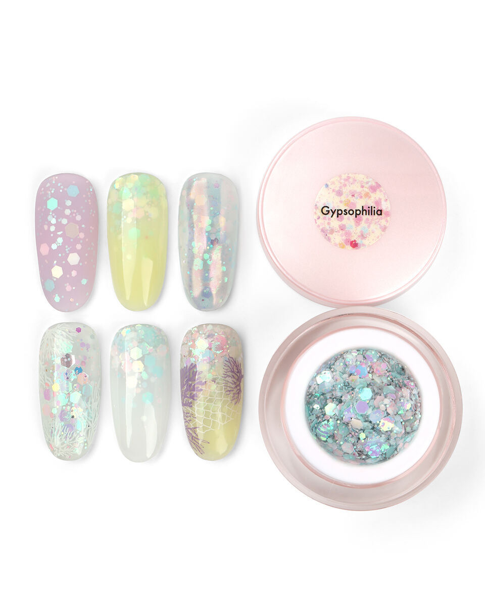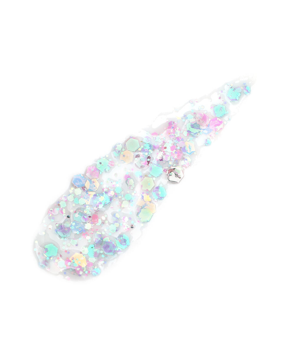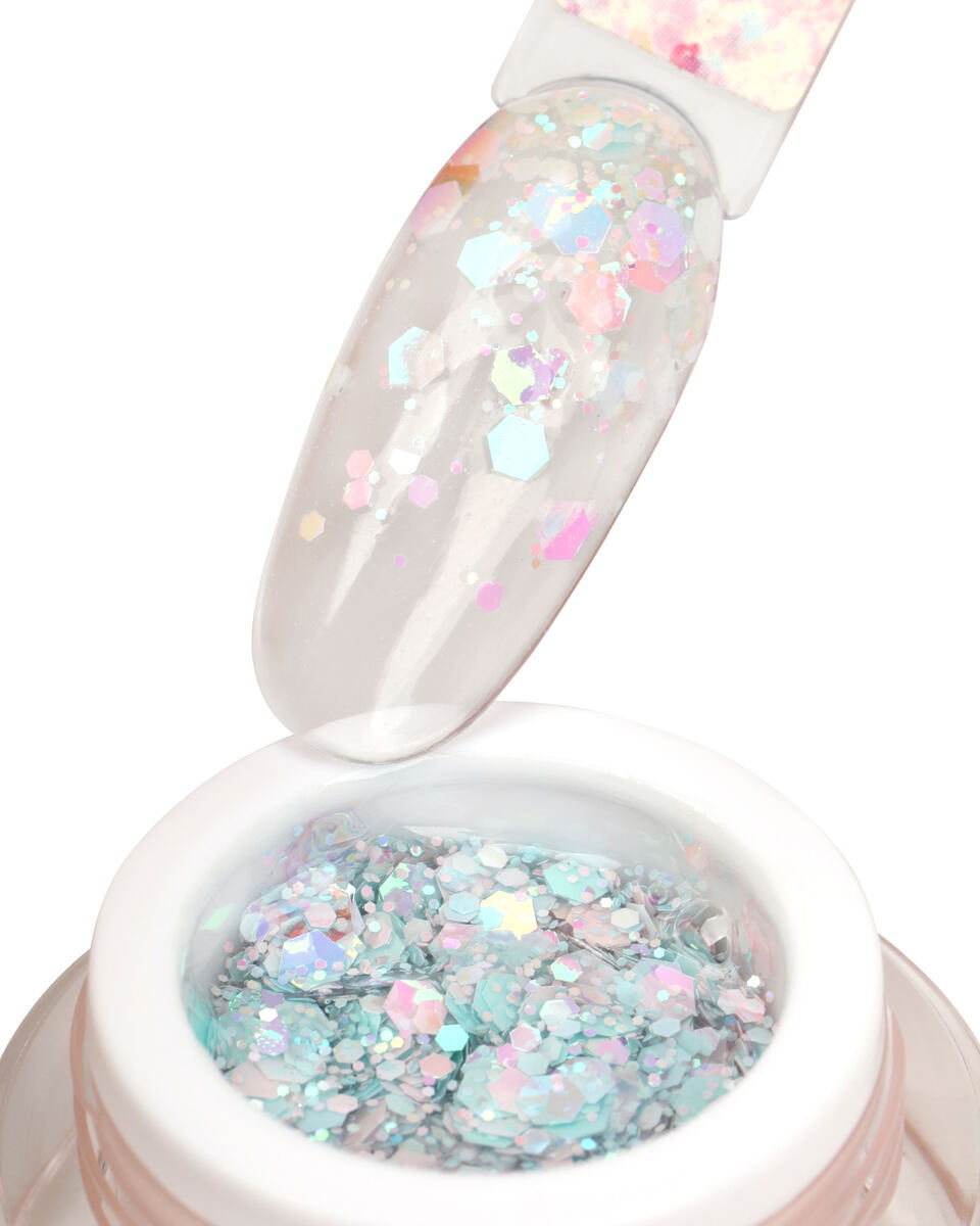 • Декоративная краска с переливающимися многогранниками и глиттером разного размера.