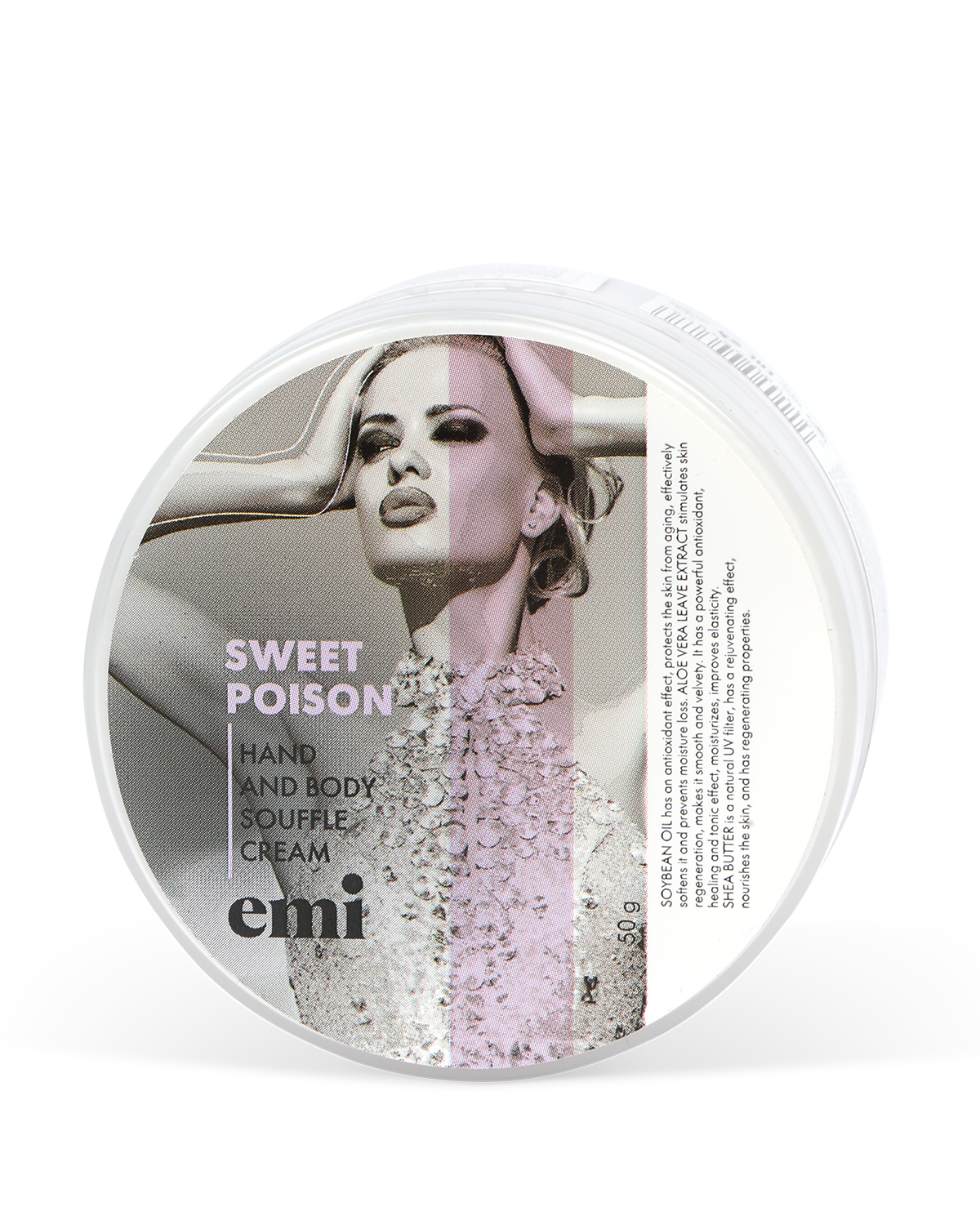 Экстрапитательный парфюмированный крем-суфле с плотной воздушной текстурой, глубоко проникает в кожу рук и тела, действуя как защитная маска. Формула экстрапитательного крем-суфле обогащена натуральными и безопасными компонентами: экстракт листьев алоэ вера, масло Ши, фруктовые масла. Рекомендовано для очень сухой кожи, всех типов в холодное время года. Аккорды чувственности для смелых и пленительных. Глубокий томный аромат открывает тайный мир желаний и соблазнов. Чарующие аккорды верхней ноты окутывают кожу чувственной вуалью и будоражат эмоции. Роскошная восточно-цветочная композиция оставляет сладкий манящий шлейф экзотического аромата. Смелый и пленительный Sweet Poison подчеркнет женственный волнующий образ.