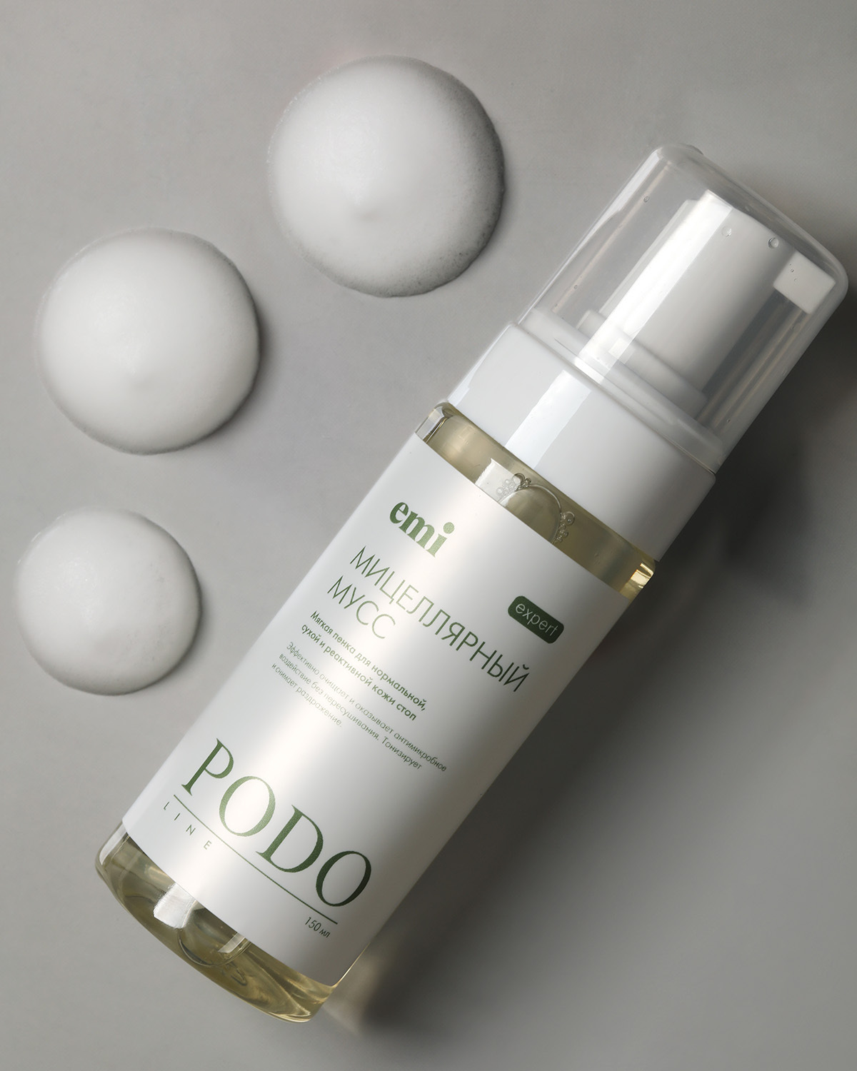 Мицеллярный мусс – мягкая и нежная пенка с воздушно-пенистой текстурой для нормальной, сухой и реактивной кожи стоп.