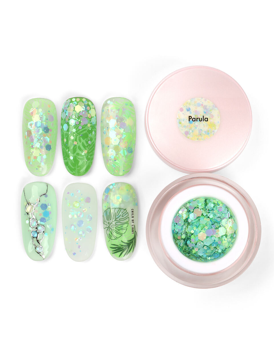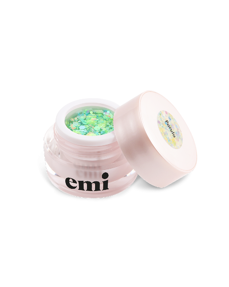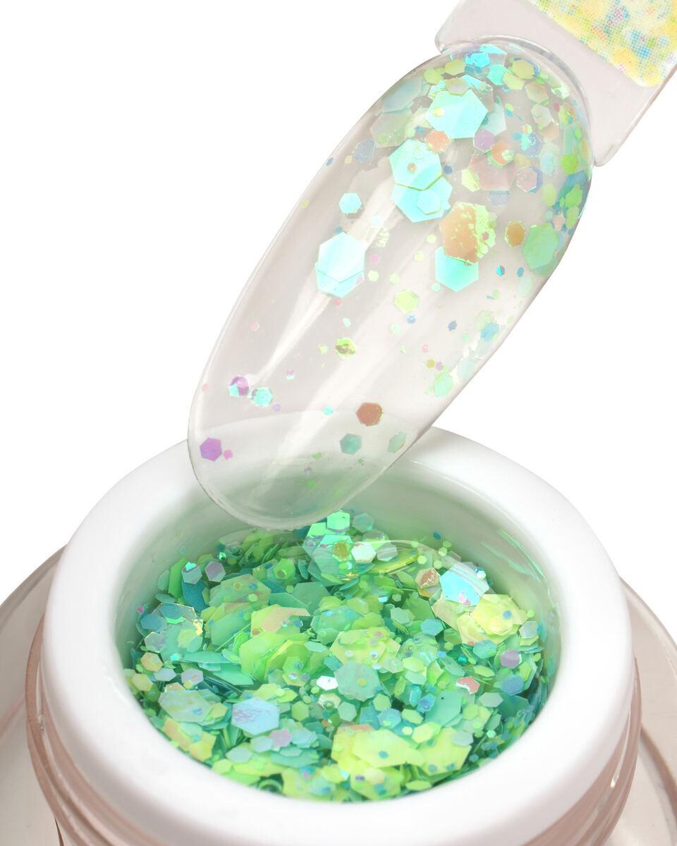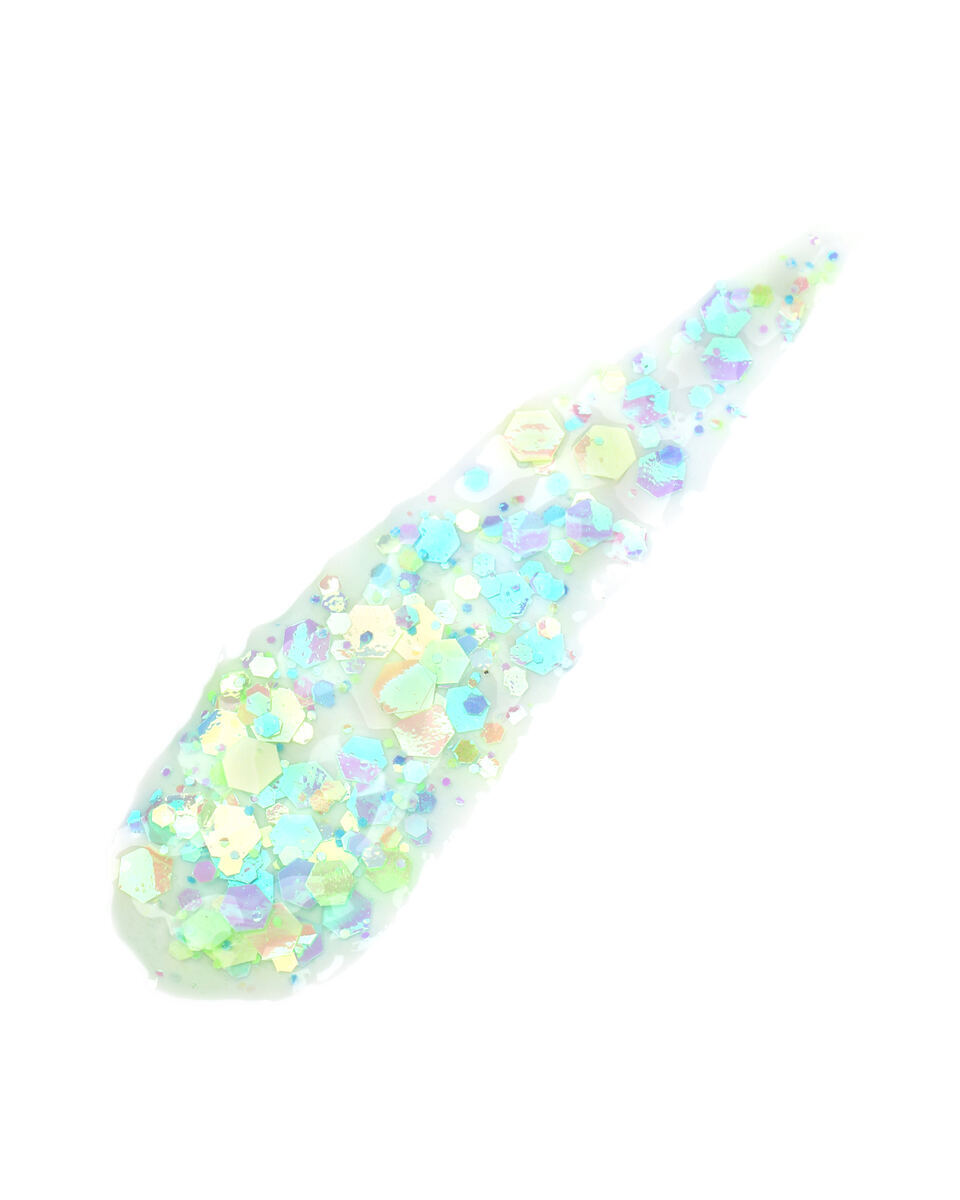 • Декоративная краска с переливающимися многогранниками и глиттером разного размера.
