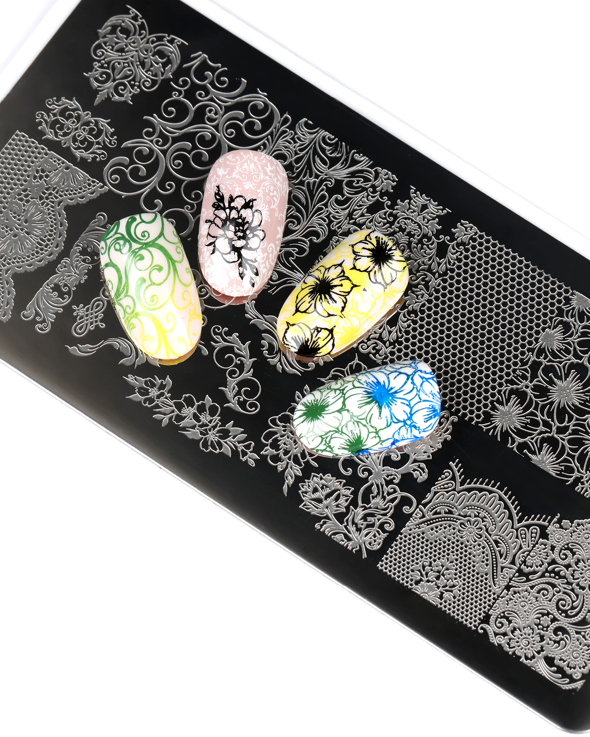 Маникюр с дизайном станет еще проще и быстрее со стемпингом EMI! • 4 пластины для стемпинга с оригинальными и самыми востребованными дизайнами! • Кружева, маленькие аккуратные элементы, паттерны и текстуры - все узоры выгравированы настолько четко, что рисунок получается в мельчайших деталях! • Размер пластины 6×12 см. Небольшой формат делает пластину удобной для хранения и размещения на столе мастера. • Пластина находится на пластиковой подложке, что делает ее комфортной в использовании. • Каждая пластина находится в индивидуальном прозрачном пакете, а также имеет синюю защитную пленку, которую необходимо удалить перед применением. Для создания идеального рисунка рекомендуем использовать лаки и штампы для стемпинга EMI.
