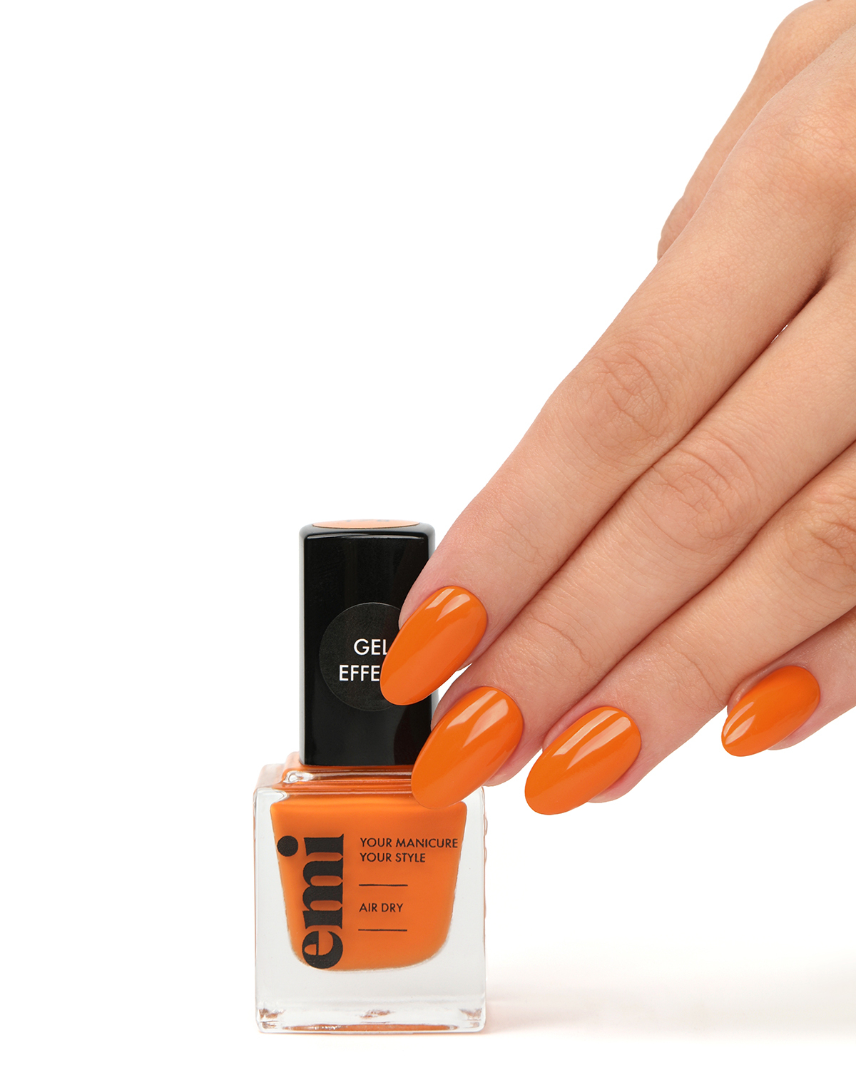 Ультрастойкий лак Gel Effect Смелое направление №178, 9 мл – насыщенный оранжевый оттенок с янтарным подтоном.. • Теплый осенний отенок; • Для профессионального и домашнего использования. • Себестоимость процедуры ниже гель-лакового покрытия. • Высокая возвратность клиентов. • Лаки не растекаются и не полосят. • Равномерное покрытие и насыщенный цвет с первого слоя. • Удобная полукруглая кисть для безупречного нанесения и идеального распределение материала. • Стойкость до 10 дней. Уникальная формула лака Gel Effect гарантирует повышенную стойкость маникюра без сколов и микротрещин. Благодаря комфортной консистенции и высокой концентрации пигмента цвет ложится ровно и не растекается, а удобная закругленная кисть обеспечит идеальное нанесение как в профессиональном, так и в домашнем использовании. Как применять? 1. Розовой пилкой для натуральных ногтей или хруcтальной пилкой EMi придаем форму свободному краю. 2. Наносим E.MiLaс Cuticle Remover на кутикулу. 3. Через 2-3 мин. удаляем загрубевшую кожу деревянной палочкой. 4. Обезжириваем EUROCLEANSER LUX. 5. Если ногти слоятся или повреждены, наносим укрепляющий Ultra Strong Base Coat Gel Effect. Сушим 5-10 мин. 6. Наносим цветной лак E.MiLac Gel Effect. Сушим 5-10 мин. 7. Наносим верхнее покрытие Ultra Strong Top Coat Gel Effect. Сушим 5-10 мин. 8. Увлажняем кутикулу E.MiLaс Dry Oil.