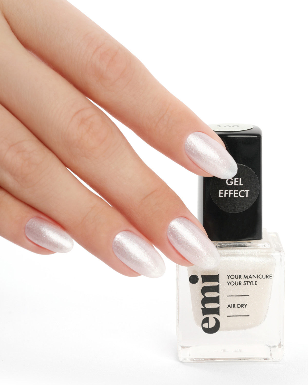 Ультрастойкий лак молочного оттенка с деликатным серебристым сиянием. • Лаковое покрытие для натуральных ногтей с гелевым эффектом. • Высыхают за 10 минут без использования лампы. • Сохраняют стойкость до 10 дней носки. • Удаляются средством для снятия лака. Уникальная формула лака Gel Effect гарантирует повышенную стойкость маникюра без сколов и микротрещин. Благодаря комфортной консистенции и высокой концентрации пигмента цвет ложится ровно и не растекается, а удобная закругленная кисть обеспечит идеальное нанесение как в профессиональном, так и в домашнем использовании. Как применять? 1. Розовой пилкой для натуральных ногтей или хруcтальной пилкой EMi придаем форму свободному краю. 2. Наносим E.MiLaс Cuticle Remover на кутикулу. 3. Через 2-3 мин. удаляем загрубевшую кожу деревянной палочкой. 4. Обезжириваем EUROCLEANSER LUX. 5. Если ногти слоятся или повреждены, наносим укрепляющий Ultra Strong Base Coat Gel Effect. Сушим 5-10 мин. 6. Наносим цветной лак E.MiLac Gel Effect. Сушим 5-10 мин. 7. Наносим верхнее покрытие Ultra Strong Top Coat Gel Effect. Сушим 5-10 мин. 8. Увлажняем кутикулу E.MiLaс Dry Oil.