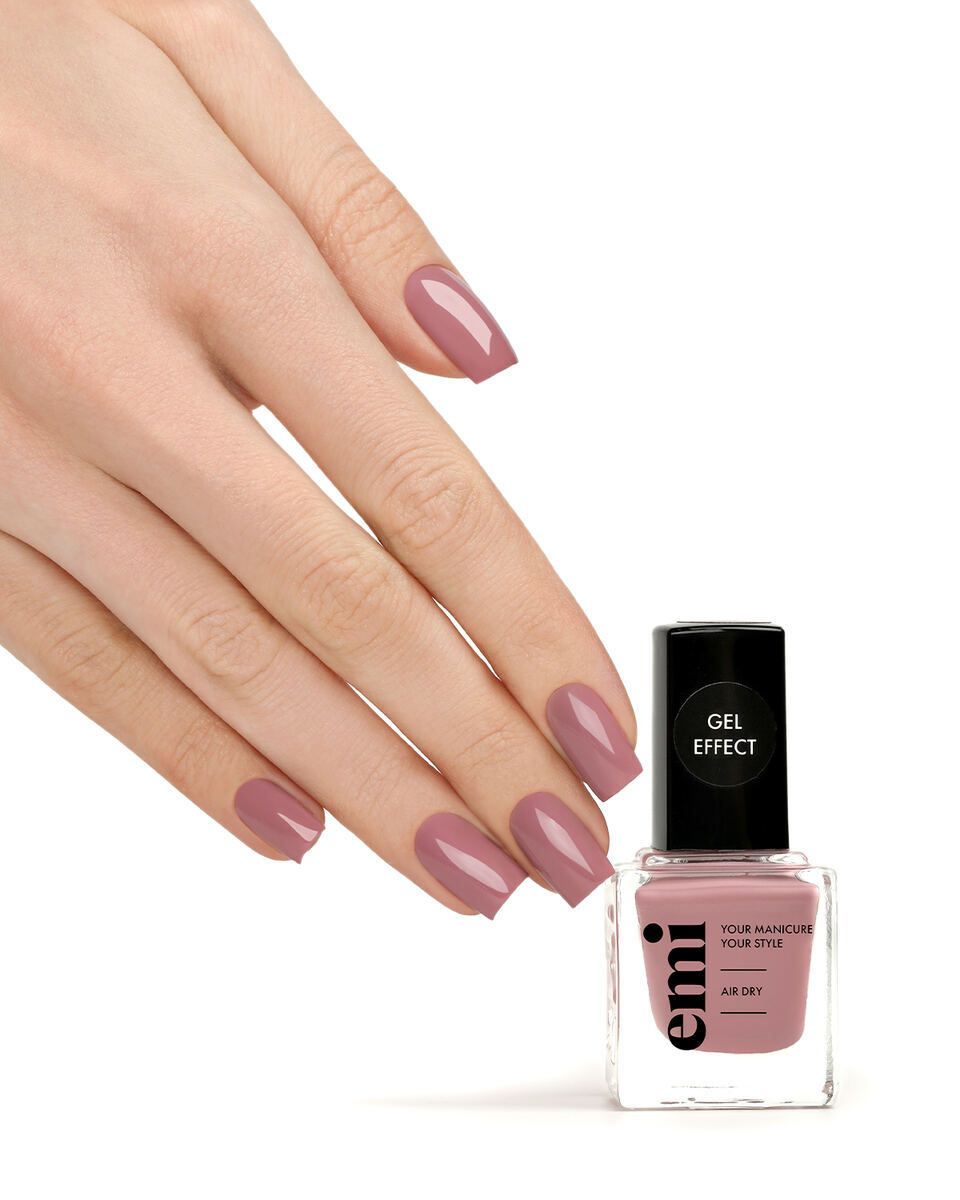 Ультрастойкий лак Gel Effect Бархатный абажур №228 бренда E.Mi – асыщенный припыленный розовый оттенок, создает идеальную гармонию глубины и выразительности цвета.