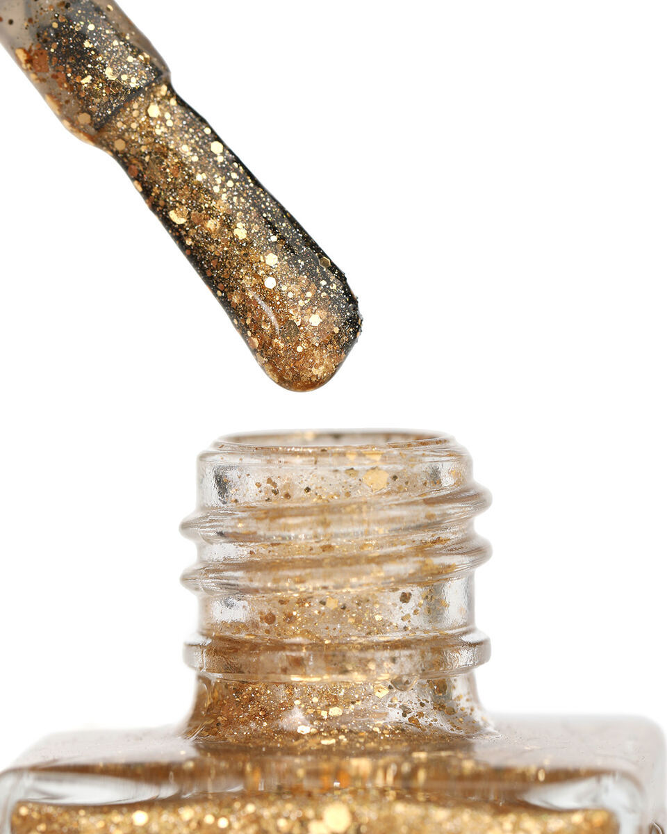 Ультрастойкий лак Gel Effect Сила притяжения №241 – благородное золотое свечение и мерцание декоративных частиц сделают вас настоящим центром притяжения.