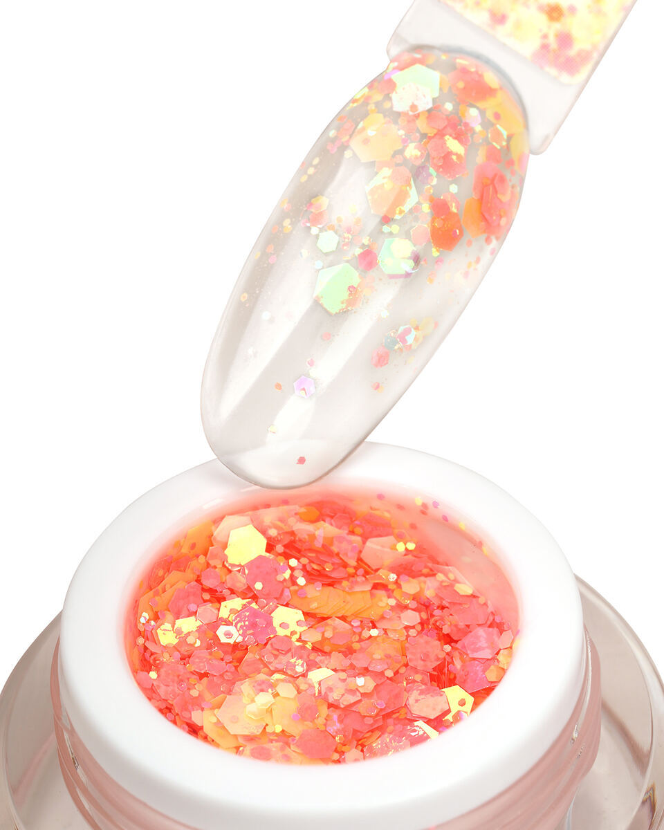 • Декоративная краска с переливающимися многогранниками и глиттером разного размера.
